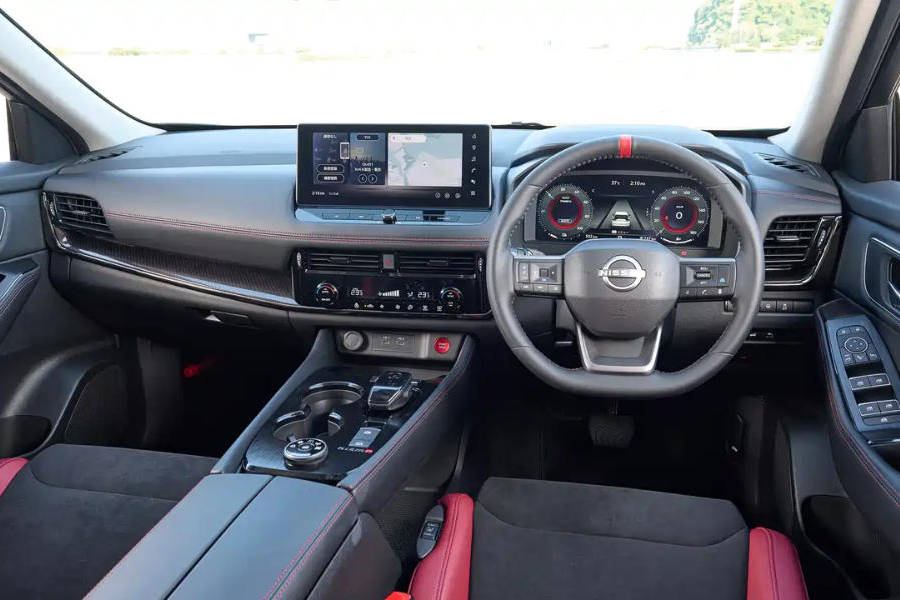 內(nèi)飾方面,奇駿NISMO以黑色為基調(diào),搭配紅色點(diǎn)綴,延續(xù)了NISMO車型特有的運(yùn)動(dòng)感與品質(zhì)感,同時(shí)保留了奇駿原有的舒適性與功能性。針對(duì)追求運(yùn)動(dòng)體驗(yàn)的用戶,提供“NISMO專用調(diào)校RECARO運(yùn)動(dòng)座椅”選項(xiàng),該座椅在彎道時(shí)能有效抑制身體晃動(dòng),增強(qiáng)駕駛體感,同時(shí)配備座椅加熱功能,兼顧運(yùn)動(dòng)屬性與舒適性。前排座椅頭枕帶有NISMO標(biāo)識(shí),進(jìn)一步強(qiáng)化運(yùn)動(dòng)氛圍。