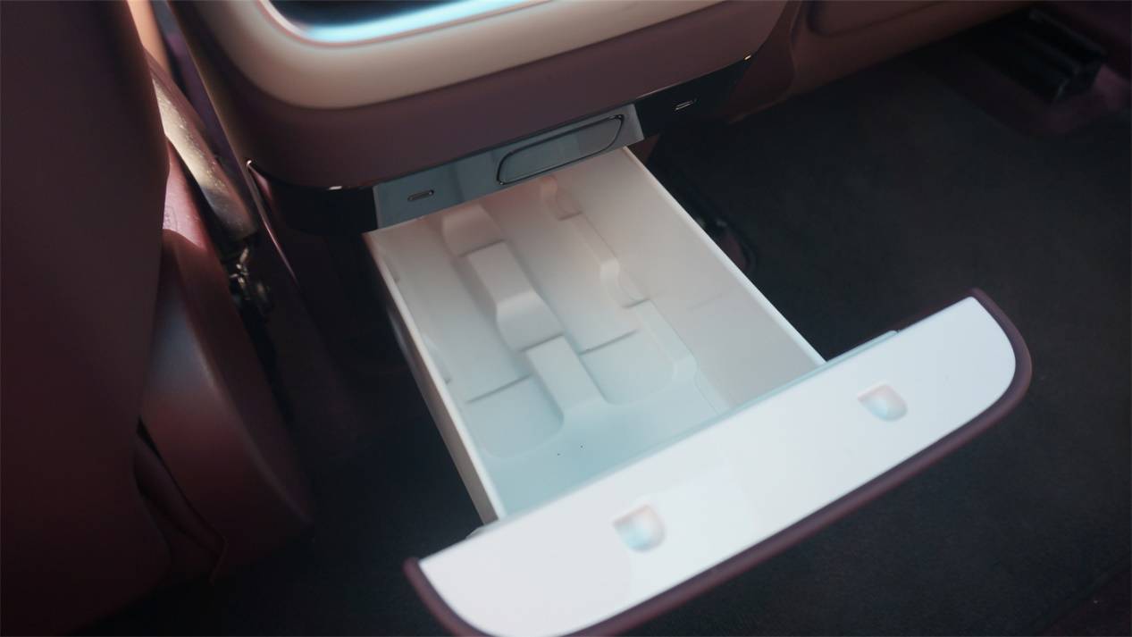 Console下方保留了冷暖箱,然而這是一個需要花費2000軟妹幣的選裝配置,而且和SU7上的一樣,還是半導(dǎo)體的而不是壓縮機的,內(nèi)部的做工也一般。另外,受到Console造型的影響,它的位置比較靠下,不熟悉的話還挺難注意到。
