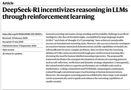 ▲發表在《自然》雜志的DeepSeek-R1論文