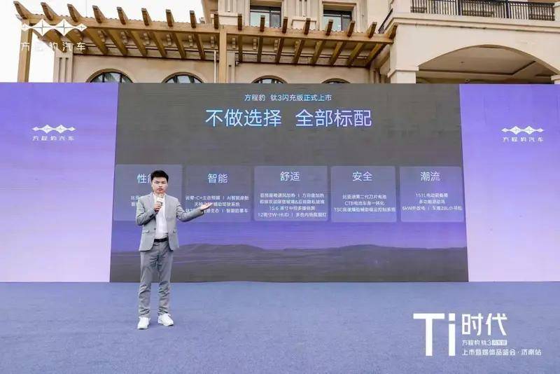 在新車推介環節,方程豹汽車魯北大區運營經理宋林濤先生登臺致辭,強調:“Ti時代,代表著技術不再高高在上,而是每一天、每一程都能被用戶感知的出行自由。5分鐘充好、9分鐘充飽,這不是實驗室數據,而是每一位車主都能享受的日常。”