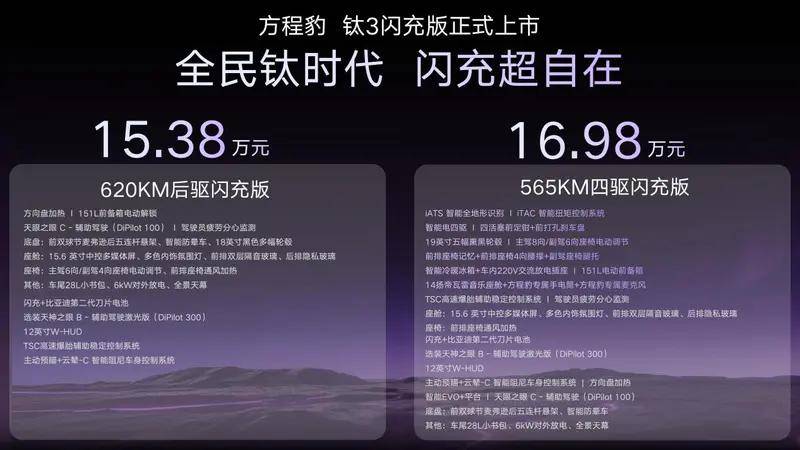 隨著閃充技術的持續落地,方程豹正在推動新能源行業從過去的“續航競賽”轉向更具實際意義的“補能效率競賽”。鈦3閃充版的問世,不僅為用戶提供了一個不用妥協的選擇,也為整個A級純電市場樹立了新的價值標桿。