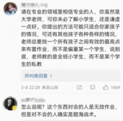 有網友評論:這個家長本身就是教育工作者,這個高校教師起碼研究生畢業,有大量的時間可以更合理的教導孩子,普通家庭還是按照傳統的模式來進行更加有效!