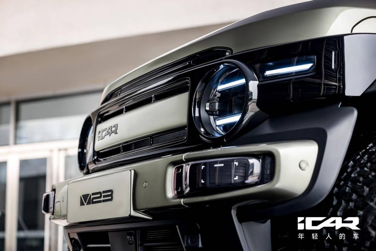 雖然iCAR V23定位緊湊級(jí),但是從造型的設(shè)計(jì)上來(lái)看,其力量感完全不輸百萬(wàn)級(jí)的經(jīng)典硬派越野車(chē)。具體到細(xì)節(jié)方面,外觀方面,iCAR V23依舊采用了經(jīng)典的「方盒子」造型,前臉部分采用了階梯式的布局,視覺(jué)層次感很足。新車(chē)采用了封閉式格柵的設(shè)計(jì),同時(shí),兩側(cè)還配備了圓形LED頭燈組,單從視覺(jué)方面來(lái)看,即復(fù)古又時(shí)尚,而凸出的前保險(xiǎn)杠以及隆起的前艙蓋也在無(wú)形中為新車(chē)增加了一些力量與野性的效果。值得一提的是,下方前保險(xiǎn)杠兩側(cè)都配備了激光雷達(dá),其擁有高階輔助駕駛能力。要知道,這些功能在曾經(jīng)方盒子的越野車(chē)型上還是不多見(jiàn)的。